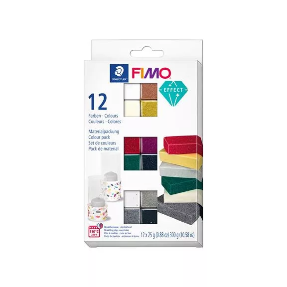Gyurma, készlet, 12x25 g, égethető, FIMO "Effect Colours", 12 különböző szín