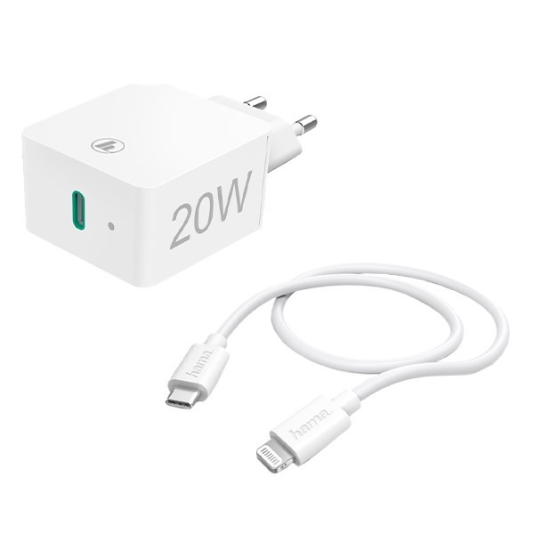 Hálózati adapter HAMA USB-C 20W + Lightning kábel fehér