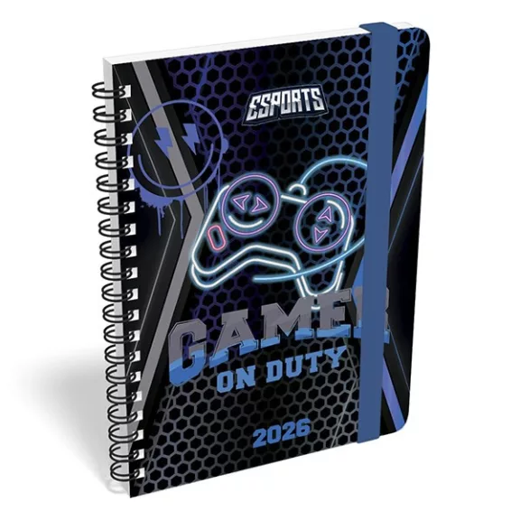 Határidőnapló LIZZY CARD B/6 heti spirálozott gumis Esport game on duty 2026.