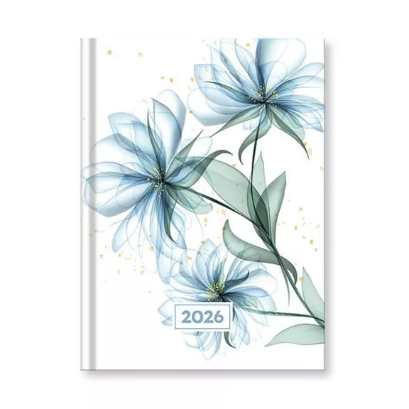 Tervezd meg a napjaidat stílusosan ezzel az elegáns B/6 méretű 2026-os határidőnaplóval. A borítója kifinomult és elegáns. A világos háttérben lévő kék árnyalatú virágok, a lágy vonalak és a finom, áttetsző részletek könnyed, légies érzést adnak neki. Az egész design frissességet és a nyugalmat sugározz, tökéletes választás lehet irodai használatra, de akár ajándéknak is kiváló.