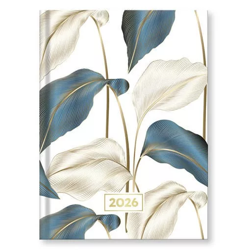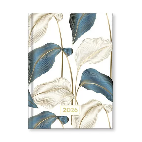 Tervezd meg a napjaidat stílusosan ezzel az elegáns, B/6 méretű 2026-os határidőnaplóval. A modern és mégis visszafogott borító arany és mélykék levélmintája letisztult megjelenítést biztosít, így tökéletes választás lehet irodai használatra, de akár ajándéknak is kiváló.