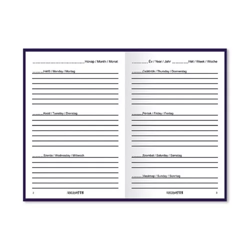 Terjedelem: 144 oldal (tartalmazza 4 év (2024-2028), mozgó és állandó ünnepeink listáját, névnapokat, órarendet, utazástervezőt)