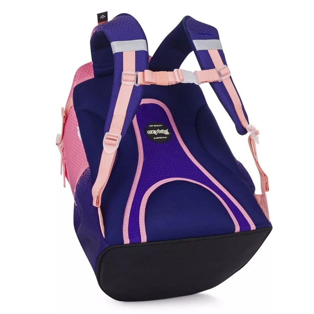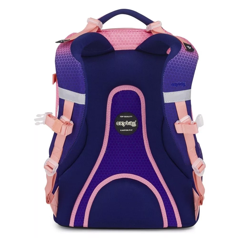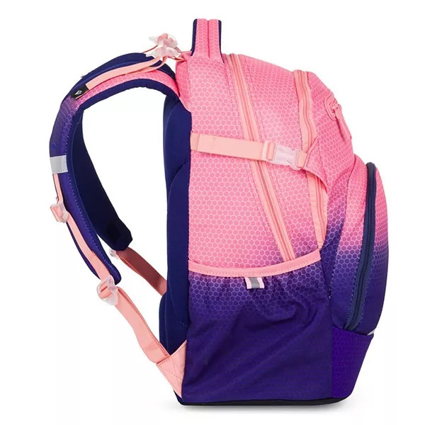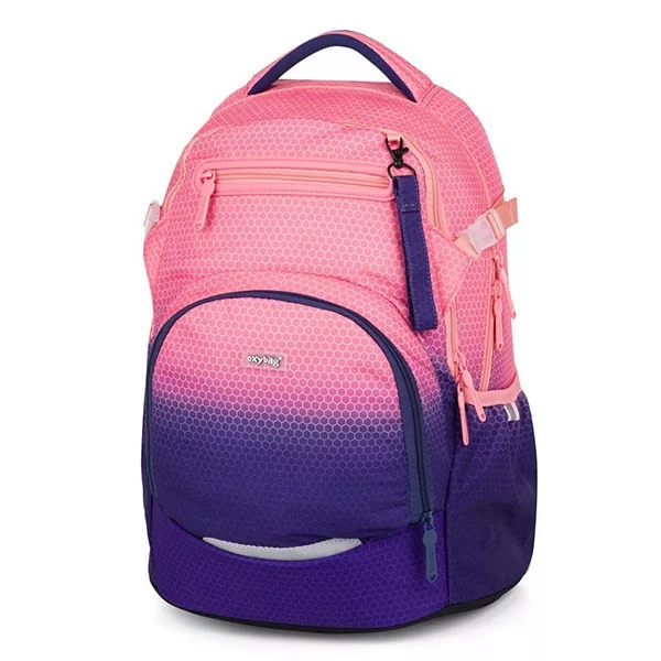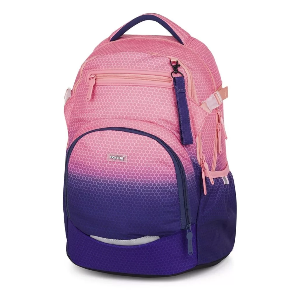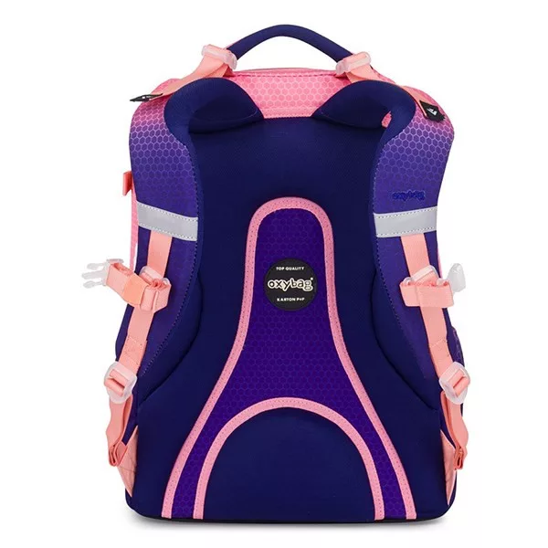 Az OXY Ombre sorozat iskolai hátizsákja ideális választás 3. osztálytól. Anatómiailag formázott hátrésszel, párnázott vállpántokkal és állítható mellkaspánttal rendelkezik. A masszív alj megakadályozza, hogy a táska önmagában felboruljon. Két tágas rekeszben elfér minden szükséges iskolai felszerelés. Az oldalzsebek rugalmas pánttal készültek, így kulacsnak is tökéletesek. Az elülső zsebben egy kisebb uzsonna is kényelmesen elrejthető. Számos fényvisszaverő elemmel a biztonságosabb közlekedésért. 136 cm testmagasságtól ajánlott. Űrtartalom: 28 l, teherbírás: 8 kg.