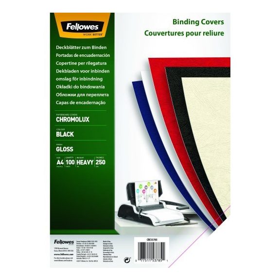 Hátlap FELLOWES Chromolux A/4 250 g fényes fekete 100/csom