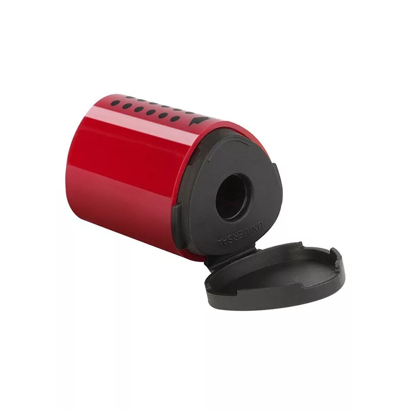 Egylyukú tartályos mini hegyező. Klasszikus Grip háromszög dizájn. Kék és piros színben.