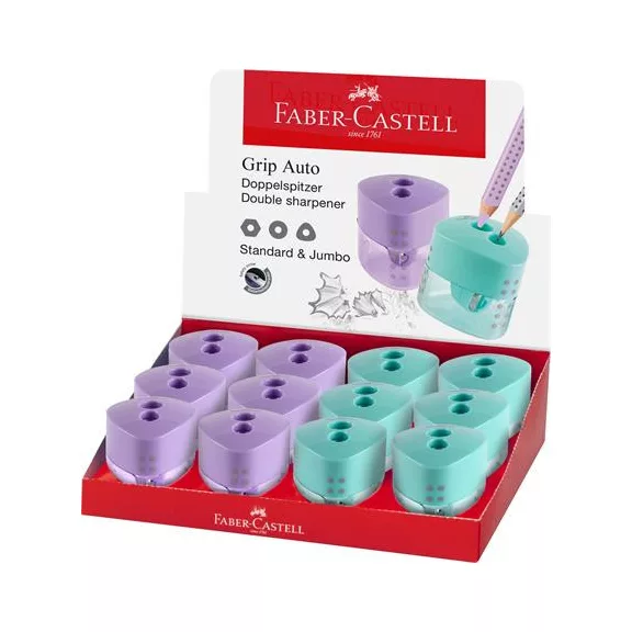 Hegyező display, kétlyukú, FABER-CASTELL, "Grip Auto", vegyes pasztell színek