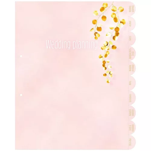 Számos tervezni- és szerveznivaló merül fel: Hol tartsuk az esküvőt? Kiket hívjunk meg? Hogyan díszítsük fel az asztalokat? Ez a tetszetős iratrendező segít tárolni és rendszerezni az esküvővel kapcsolatos papírokat, és biztosítja, hogy a fontos dokumentumok és feljegyzések ne vesszenek el.