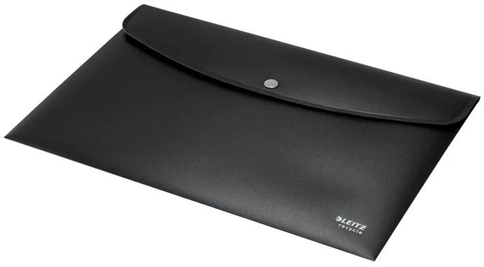 Irattartó tasak, A4, PP, patentos, LEITZ "Recycle", fekete