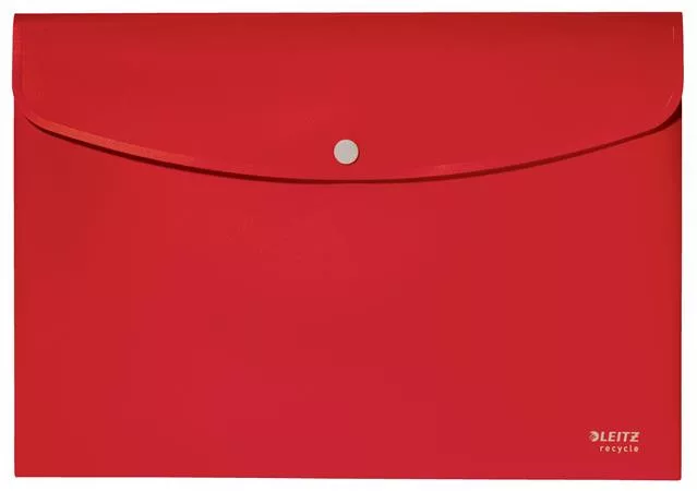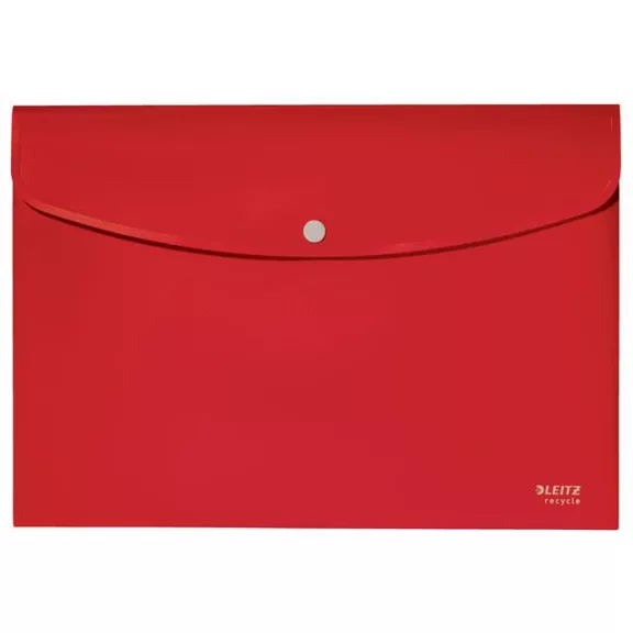 Irattartó tasak, A4, PP, patentos, LEITZ "Recycle", piros