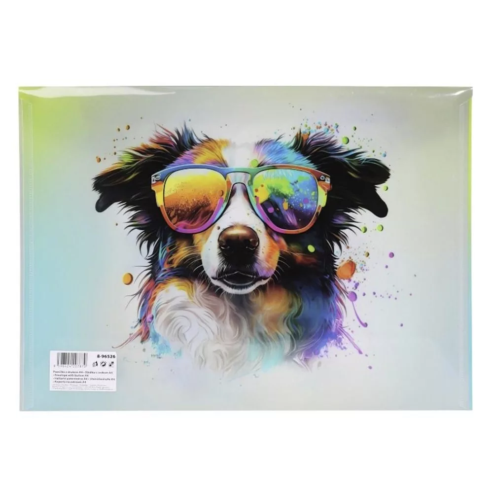 Vidám mintájú borítékos mappa. Tartós, 200 mikron vastag polipropilénből készült, amely megvédi a tartalmat a sérülésektől. Praktikus patentos záródása biztonságos tárolást nyújt. Ideális A4-es munkalapok, valamint kisebb eszközök (például vonalzó) szállítására és rendszerezésére. Tökéletes kiegészítő minden kisiskolás számára.