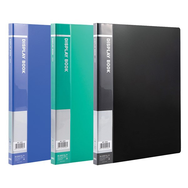Szórólapok, árlisták, ajánlatok átadására, tárolására. 180°-ban nyitható. Anyaga PP. 30 zsebes változat, vegyes színekben: kék-zöld-fekete