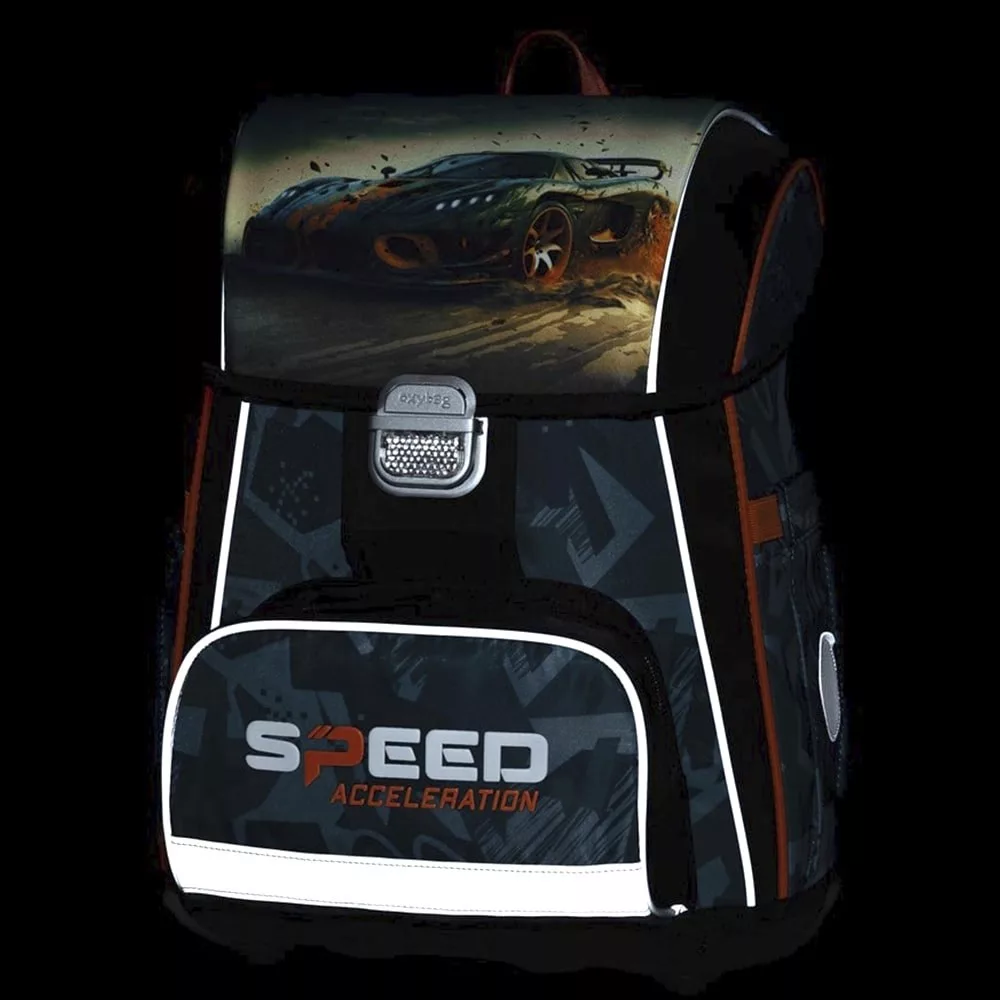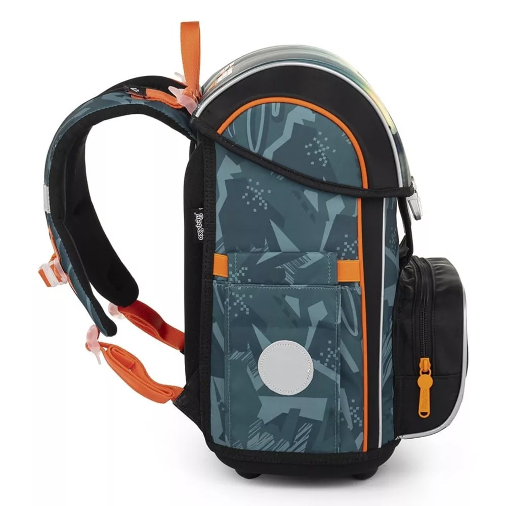 A PREMIUM iskolatáska anatómiailag formázott, így megfelelő illeszkedést biztosít a háton. A megerősített hátrész és belső merevítés megtartja a táska formáját. A párnázás kellemes, légáteresztő anyagból készült, a széles, puha pántok pedig egyenletesen terhelik a gyermek vállát. Az egy nagy rekesz kényelmesen elnyeli az 1–2. osztályosok összes tanszerét. További akasztók is találhatók rajta a pántok rögzítéséhez. A masszív alj védi a tartalmat, és megakadályozza a felborulást. Fém biztonsági csattal záródik, fényvisszaverő elemmel. Az elülső zseb uzsonnához ideális, emellett sok fényvisszaverő rész található rajta. Űrtartalom: 27 l, teherbírás: 8 kg.