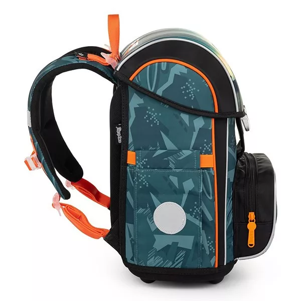 Remek 3 részes szett: PREMIUM iskolatáska, üres tolltartó és tornazsák. A PREMIUM iskolatáska anatómiailag formázott, így megfelelő illeszkedést biztosít a háton. A megerősített hátrész és belső merevítés megtartja a táska formáját. A párnázás kellemes, légáteresztő anyagból készült, a széles, puha pántok pedig egyenletesen terhelik a vállat. Az egy nagy rekesz kényelmesen elnyeli az 1–2. osztályosok összes tanszerét. További akasztók segítik a pántok rögzítését. A masszív alj megakadályozza a felborulást és a tartalom kiborulását. Fém biztonsági csattal, fényvisszaverő elemmel záródik. Az elülső zseb uzsonnához ideális, sok fényvisszaverő elemmel. Űrtartalom: 27 l, teherbírás: 8 kg. A szett tartalmaz egy egyszintes, üres tolltartót és egy azonos mintájú tornazsákot is.