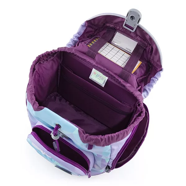 A táska egy tágas rekesszel rendelkezik, amely kényelmesen elfér minden iskolai kellék a 1. és 2. osztályos gyermekek számára. A szilárd alj megvédi a tartalmat a felborulástól és kiömléstől. A záródás biztonsági csattal van ellátva.