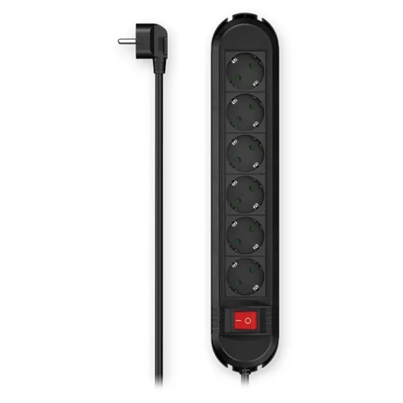 Kábel hosszabbító HAMA Colour 6 aljzat 1,5m kapcsolóval fekete