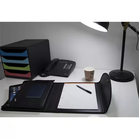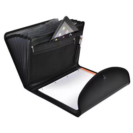 Tablet rekesszel kiegészített konferencia mappa -6 rekeszes harmónika mappa indexfülekkel -A4-s méretű vonalas jegyzettömbbel ellátott (cserélhető) -cipzáras zseb -anyag: PP -tolltartó -méret: 25,5x33 cm -kapacitás: 200 lap (80 g/m2)