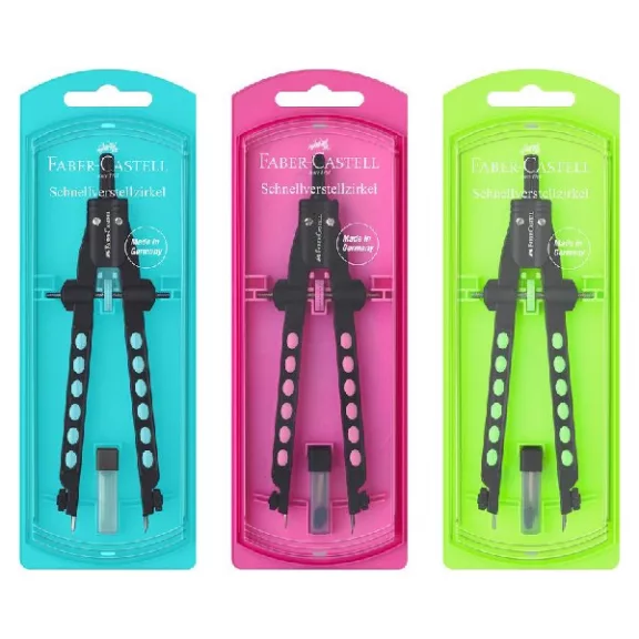 Körző készlet gyorsállítóval. Ideális általános iskolába, középiskolába és főiskolába is. A tű és a grafithegy hatékony rögzítése. Legfeljebb 340mm-es kör átmérőhöz. A készlet tartalmazza a körzőt és a pótalkatrészeket.