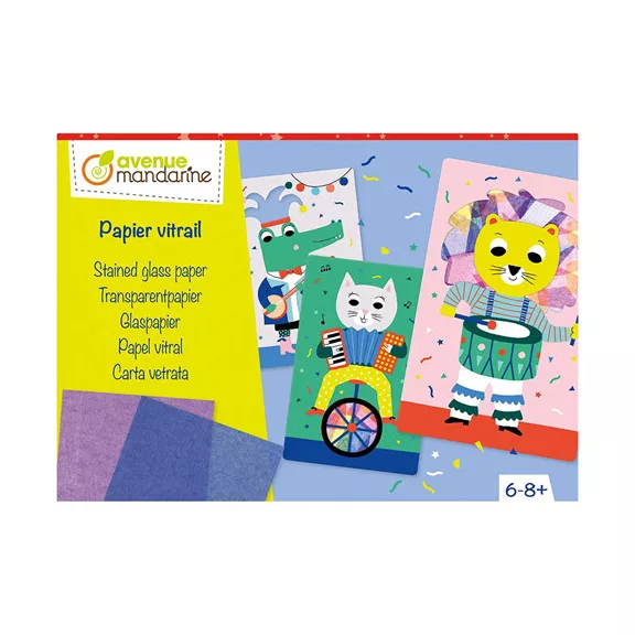 Fedezd fel újra az üvegfestés hangulatát ezzel a kreatív készlettel, amelyben 5 darab állatos képeslapot díszíthetsz élénk, áttetsző színes papírokkal.