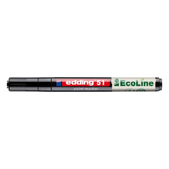 Professzionális minőségű lakkmarker rendkívül jól fedő és tartós jelölésre és címkézésre sötét, átlátszó és sima anyagokon, pl. üveg, fém és műanyag. Környezetbarát, vízbázisú, alacsony VOC tartalmú festék. A marker gyártásához felhasznált műanyag legalább 80%-a fogyasztás után keletkezett újrahasznosított anyag. A kerekített csúcs vonalvastagsága 1-2 mm. A lakkmarker tintája fényálló, gyorsan száradó és vízálló. A termék utántölthető az edding LT25 utántöltő tintával. Megfelelő tartalék írócsúcsok (edding 51 tartalék írócsúcsok) elérhetők. Szagmentes tinta hozzáadott toluol/xilol nélkül.