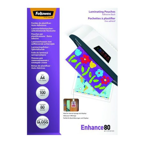 Lamináló fólia FELLOWES A/4 80 mikron fényes öntapadó 100/csom