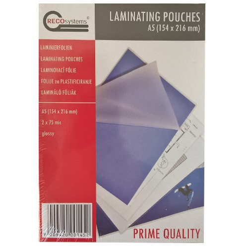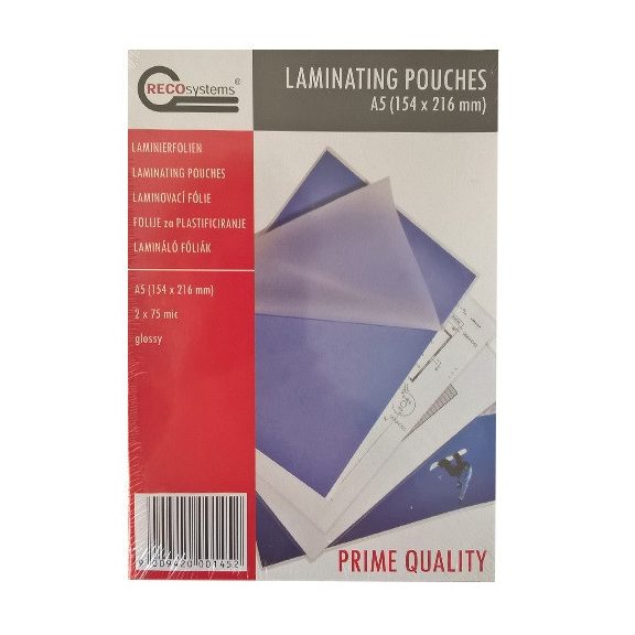 Lamináló fólia Recosystem 216x154 mm A/5 75 mic. 100 lap/csomag