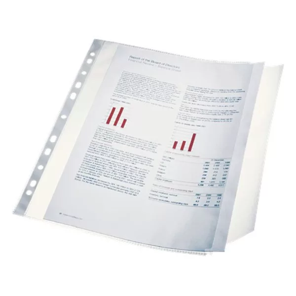 Dokumentumok biztonságos tárolásához. Jobb oldalon nyitott, melynek köszönhetően a dokumentumok könnyen hozzáférhetők. A 11 lefűzőlyuknak köszönhetően bármilyen iratrendezőben, gyűrűskönyvben használható.
