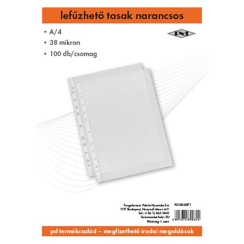 Lefűzhető tasak pd A/4 38 mic. narancsos 100 db/csomag