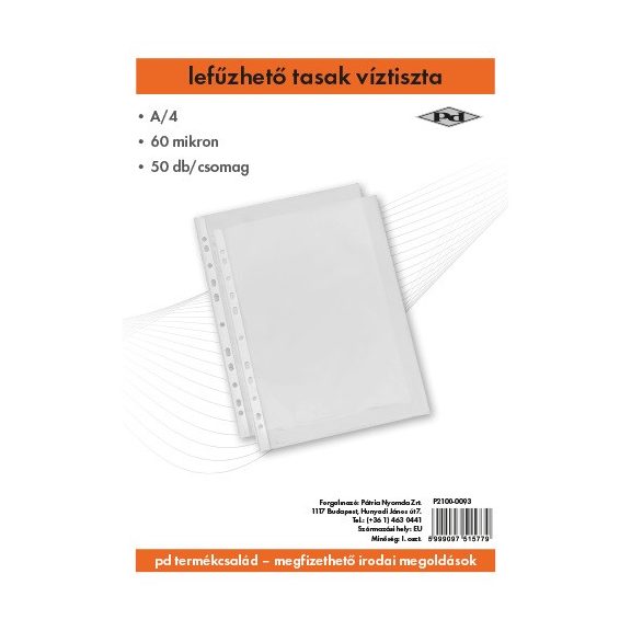 Lefűzhető tasak pd A/4 60 mic. víztiszta 50 db/csomag