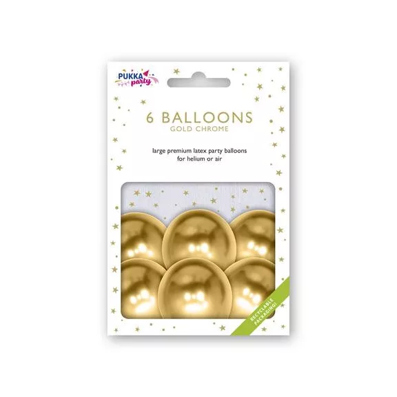 Léggömb, 30 cm, PUKKA PAD, metál arany