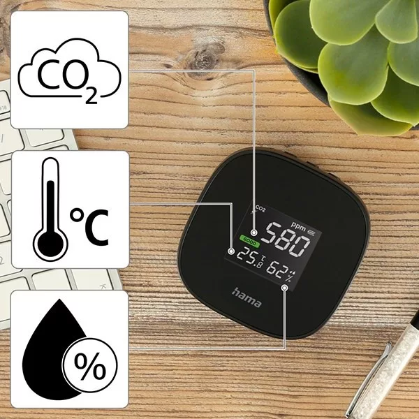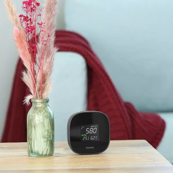 A levegőmérő készülék segít az egészséges környezet fenntartásában . A Széndioxid-mérő készülék a helyiség levegőjének CO2-tartalma mellett a környezeti páratartalmat és a hőmérsékletet is méri. Ez segít megtalálni a megfelelő egyensúlyt a szellőztetés és a fűtés között az egészséges szobakörnyezet és a jó közérzet érdekében.