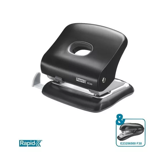 Lyukasztó, kétlyukú, 30 lap, RAPID "FC30", fekete