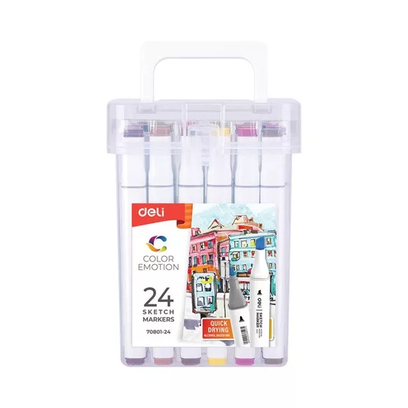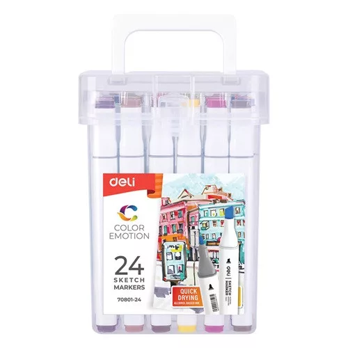 Marker Deli Color Emotion vágott és gömbölyű hegy 24 db-os klt.