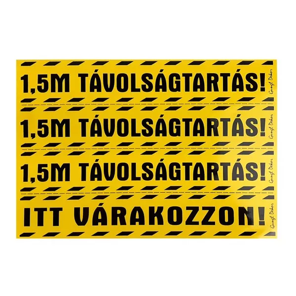 Matrica Távolságtartás! 1,5m Itt várakozzon! Sárga 25x17,5 cm "C"