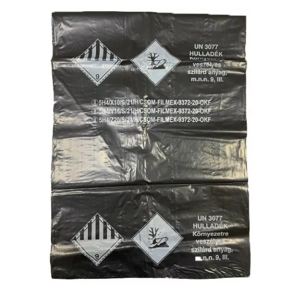 Veszélyes anyagok és hulladékok tárolására és szállítására alkalmas, nemzetközi szabványnak megfelelő zsák.