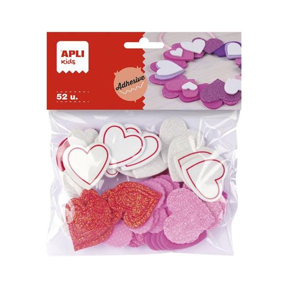 Moosgumi, öntapadó, szívek, APLI Kids "Eva Sheets", vegyes színek