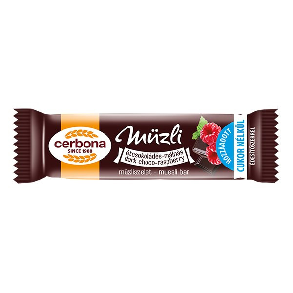 Tartalmaz többfajta gabonapehelyt, étcsokoládé darabokat, kakaót és málnát. Cukor helyett maltitszirupot tartalmaz.