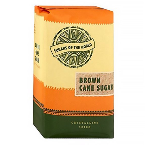 Barna nádcukor. Cukornádból hagyományos eljárással készült. Márkája: Sugars of the World. Mennyiség: 1000 gr. / zacskó.