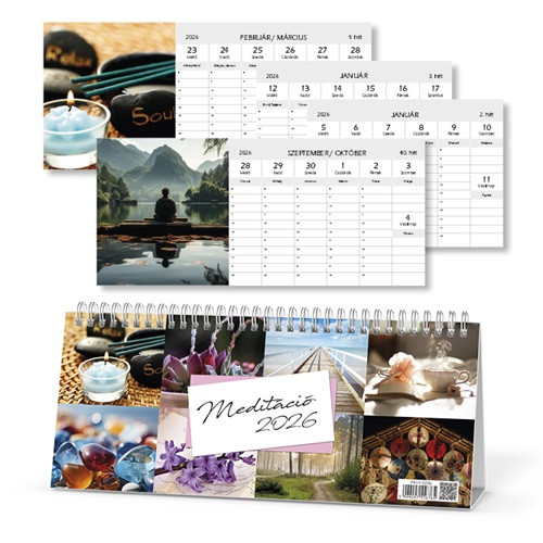 • Naptárbeosztás: heti beosztás, 8–18 óra közötti időbeosztással, magyar név- és ünnepnapok feltüntetésével