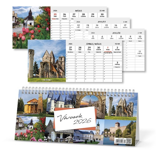 A pd Városok 2026 asztali csonka naptár a modern városi élet energiáját viszi az asztalodra. Letisztult formátum, dinamikus képek és átlátható heti beosztás jellemzi - ideális választás vállalati környezetbe is.