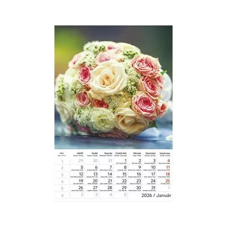 Egy szép virágcsokor a lakás vagy iroda bármely pontját feldobja. -ikerspirálozott -14 lap -magyar naptárháló -méret: 220x330 mm -reklámfelület: 220x50 mm -szitázással, présfólia nyomással emblémázható Gyártó/első EU forgalmazó elérhetősége: Kalendart Kiadó Kft 2000, Szentendre, Dobogókői u. 4. kalendart@kalendart.hu www.kalendart.hu