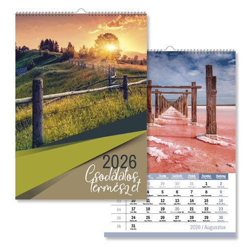 A pd Csodálatos természet 2026 fali naptár a természet változatos, megnyugtató arcait mutatja be. A 30×42 cm-es formátum és a matt műnyomó papír kiemeli a képek részletgazdagságát, így minden hónap egy új vizuális élmény. Ideális irodai, otthoni vagy közösségi terekbe.