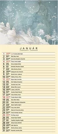 álló formátum 215x490 mm 14 lapos lapok 100 g/m2, műnyomó időbeosztás: havi magyar naptárháló hátlap anyaga fehér karton Gyártó/első EU forgalmazó elérhetősége: Kalendart Kiadó Kft 2000, Szentendre, Dobogókői u. 4. kalendart@kalendart.hu www.kalendart.hu