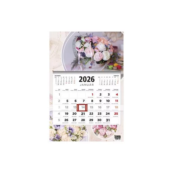 Naptár, speditőr, három hónapos, egy tömbös, TOPTIMER, "Virágok"