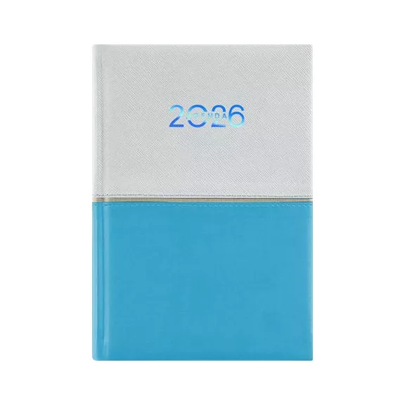 Puha bőrhatású anyagból. A színek egy alkotnak derűs összhangot. -időbeosztás: félórás, 8-18.00 h -műbőr, bőrhatású borító -lapok 70 g/m2, fehér ofszet papírból -jelzőszalaggal -sarokperforáció -Budapest és Magyarország térképpel -fehér-világoskék nyomat -havi összesített naptár -éves tervező -telefonregiszter/jegyzetoldalak -hasznos információk Termékek felépítése: -személyes információk -összesített naptár -éves tervező horizontális -éves tervező vertikális -térképek -névnapok listája -nemzetközi ünnepek -születésnap, évforduló tervező naptár odalak (névnapok, magyar ünnepnap kiemelés, napkelte és napnyugta adatok, holdállás, eltelt/hátralévő napok, napi teendők, összesített havi naptár, jegyzetrész) -jegyzet oldalak, melyek telefonregiszterként is használhatóak -hőre színeződő anyagból készült borító: vakdombor nyomás esetén különösen szép hatás érhető el -szitázással, présfólia- és vaknyomással emblémázható