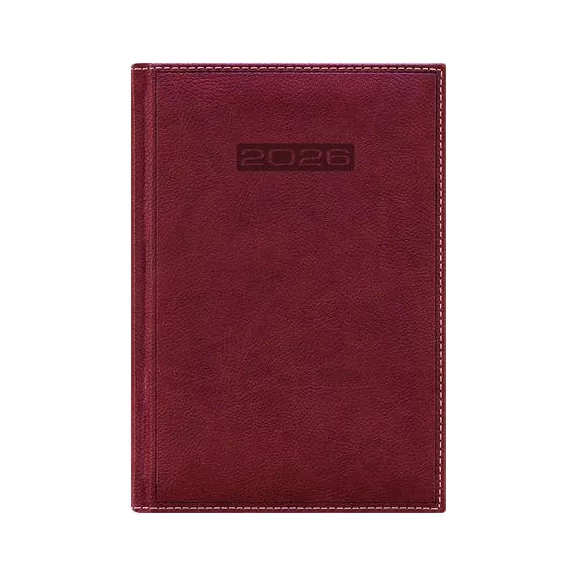 Finoman struktúrált, bőrhatású anyag felhasználásával, enyhén kontrasztos varással készült borító. A kerekített sarkok tovább erősítik az eleganciát. -matt, bőrhatású borító -időbeosztás: félórás, 8-18.00 h -lapok 70 g/m2, chamois papírból -szürke-vörös nyomat -jelzőszalaggal -sarokperforációval -Budapest és Magyarország térképpel -havi összesített naptár -éves tervező -telefonregiszter/jegyzet oldalak -hasznos információk Termékek felépítése: -személyes információk -összesített naptár -éves tervező horizontális -éves tervező vertikális -térképek -névnapok listája -nemzetközi ünnepek -születésnap, évforduló tervező -naptár odalak (névnapok, magyar ünnepnap kiemelés, napkelte és napnyugta adatok, holdállás, eltelt/hátralévő napok, napi teendők, összesített havi naptár, jegyzetrész) -jegyzet oldalak, melyek telefonregiszterként is használhatóak -hőre színeződő anyagból készült borító: vakdombor nyomás esetén különösen szép hatás érhető el -présfólia- és vaknyomással emblémázható