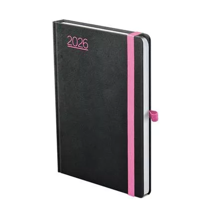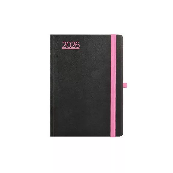 Naptár, tervező, A5, napi, TOPTIMER, "Nero", fekete-pink