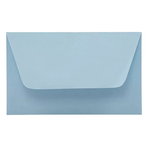 Névjegykártya méretű, színes boríték, enyvezett záródással.