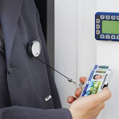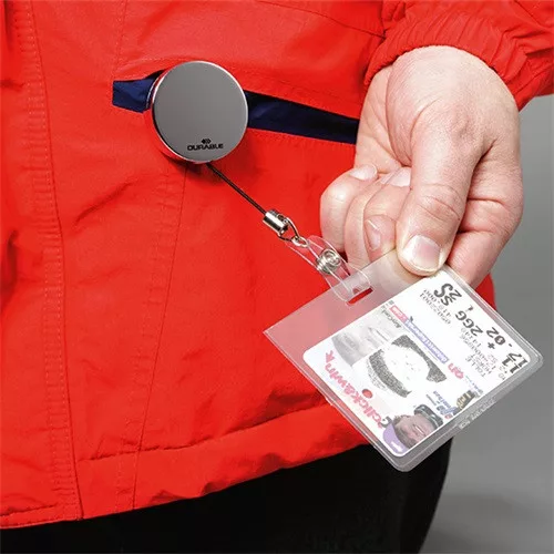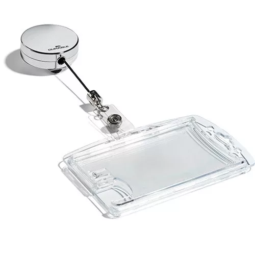 Névkitűző tartó Durable króm patentos kihúzható 85 cm szürke