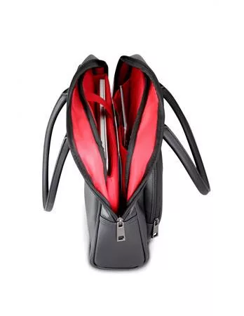 Az Urban Factory Ladee táska kiváló választás munkához és a hétköznapokhoz egyaránt. -magas és kényelmes fogantyúk -ellenálló és vízlepergető anyagból készült, kívül szemcsés műbőrből -puha, kopásálló vörös belső bélés -levehető vállpánt -külső cipzáras zárható zseb -belső cipzáras zárható zseb -apró fém védőtalpak a táska alsó felületén -méret: 390x320x115 mm (fogantyúval: 390x510x115 mm) -korlátozott élettartam garancia