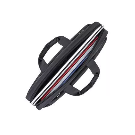 Vékony, kompakt 15,6"-os képátlójú notebookokkal kompatibilis táska; Egyedi ütéscsillapító anyagból készült belső, amely megvédi a számítógépet az esetleges károsodásoktól; A külső zseb mobiltelefon, névjegykártyák és egyéb kiegészítők tárolásához; Kettős cipzár a könnyű és gyors hozzáféréshez; Kényelmes, párnázott fogantyú és egy levehető, állítható hosszúságú vállpánt, csúszásgátló vállvédővel. Anyaga: poliészter Szín: fekete Belső méret: 385x265x45 mm Külső méret: 395x295x70 mm Súly: 0.580 kg Gyártó/első EU forgalmazó elérhetősége: Riva Handelsgesellschaft mbH Eschborner Landstraße 55 Frankfurt am Main, 60489, Germany info@rivacase.com www.rivacase.com